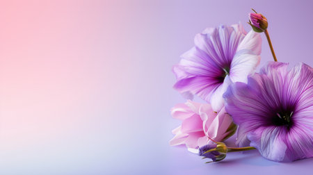 Delicate pink mallow flower on a beautiful background. Spring theme. Copy space.