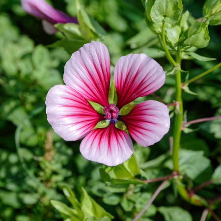Pink and white flowers of mallow, Malva sylvestris