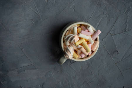 Sweet marshmallow as a food concept on rustic background with copy space