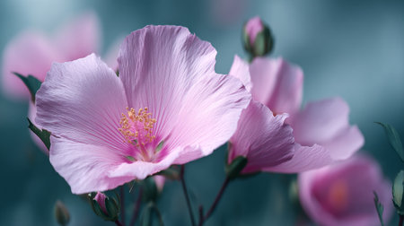 Pink bud close up. Malva arborea. Mallow Flowers in Bloom in Springtime, known as Lavatera arborea, Malva eriocalyx copia