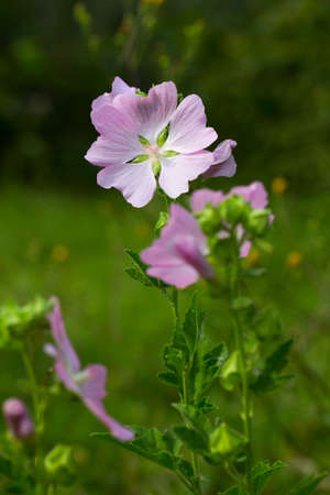 gentle pink flower (lavatera Thuringian). Medicinal, melliferous and ornamental plant