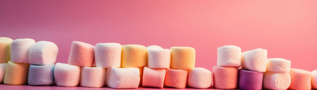 Marshmallows Standing On Gradient White Pink Background Wide Panoramic