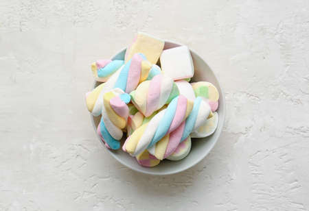 Bowl with yummy marshmallows on light background