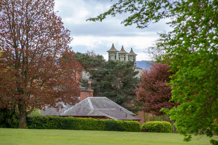 Close up rooftop view of buildings in the campus area of Dumfries, Scotland