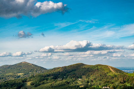 Looking south on a sunny summer day,along the hills and summits of the Malverns,a landmark of southern England.