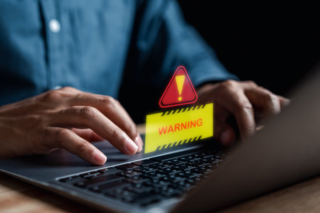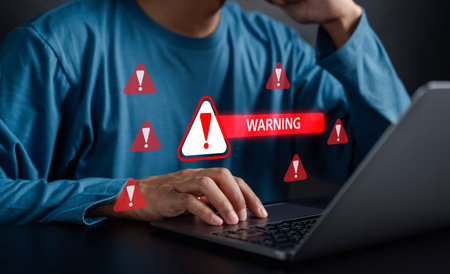 System warning caution sign for notification error and maintenance concept. cyber attack on computer network. Cybersecurity vulnerability, data breach, illegal connection, compromised information.