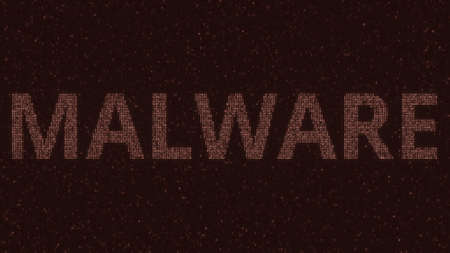 MALWARE text made with many symbols on computer screen, 3d rendering
