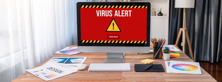 Virus warning alert on computer screen detected brisk cyber threat , hacker, computer virus and malware