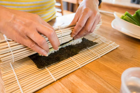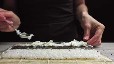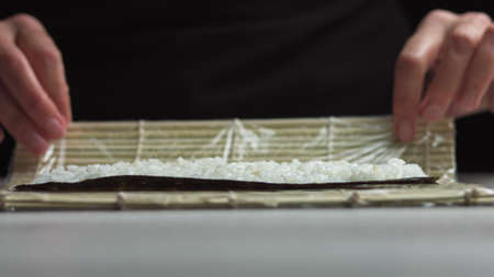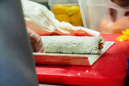 The process of preparing sushi from rice and additional ingredients at home 2019