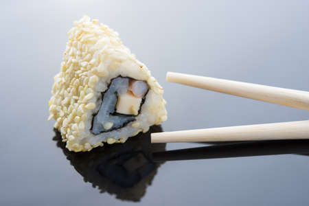 Sushi roll sushi with prawn, avocado, cream cheese, sesame. Sushi menu