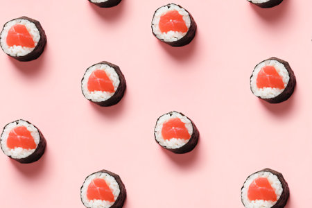minimal food. Sushi rolls on bright background, AI Generated. high quality photo