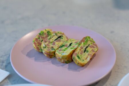 Korean egg rolls mixed ham and broccoli, Tamagoyaki