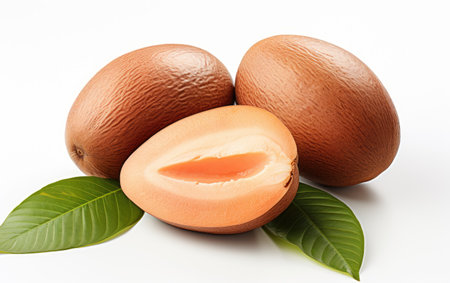 Selective focus on Ciku (Manilkara zapota) fruit with a white background.