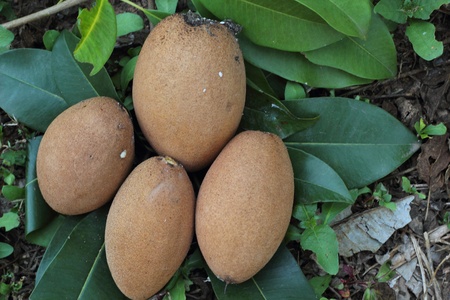Sapodilla or sapote fruits of tropical evergreen tree (lat.- Manilkara zapota)