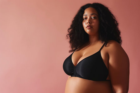 Beautiful african american woman in black underwear on pink background