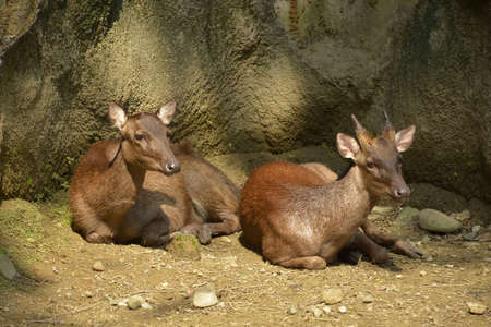 Serows,Chamois sitting peacefully on the ground.