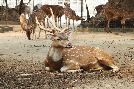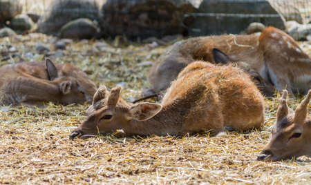 Deer sleeping on the ground in the park