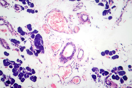 Concept of Education anatomy and physiology of mammary gland is an exocrine gland in mammals under the microscopic in laboratory.