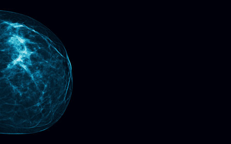 Digital mammogram or breast imaging scan isolated on black background with copy space. Medical illustration, cancer screening for women's health