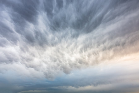 amazing cloudscape of stormy weather with dramatic mammatus clouds
