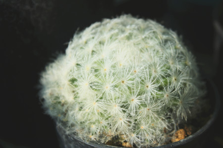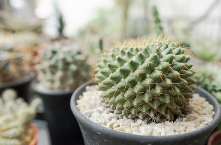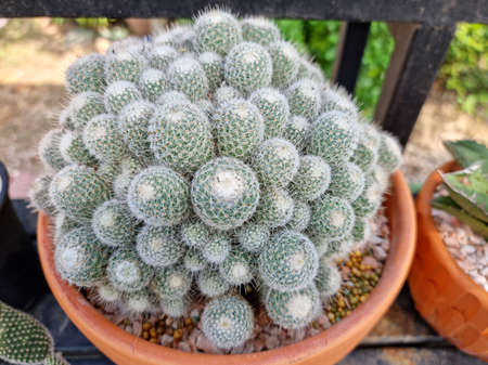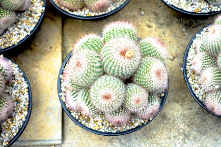 Mammillaria sp.cactus in black flower pot
