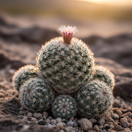 Cactus flower in the desert. (Mammillaria cactus)