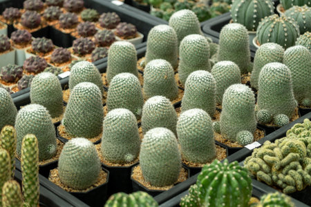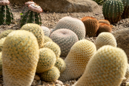 Group of different succulent cactus plants in botanical garden