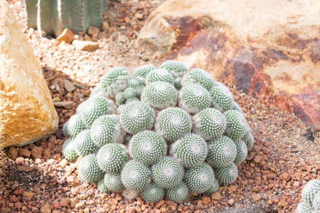 cactus mammilaria geminispina succulent in summer with shadow