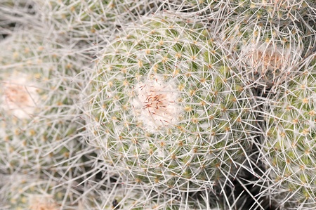 A closeup of the spiny pincushion cactus. Mammillaria spinosissima.