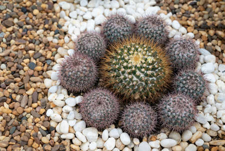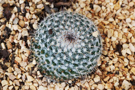 Ball cactus taken in top view on rocks background
