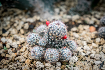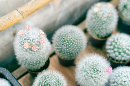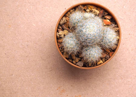 Mammillaria cactus on pot with wooden background