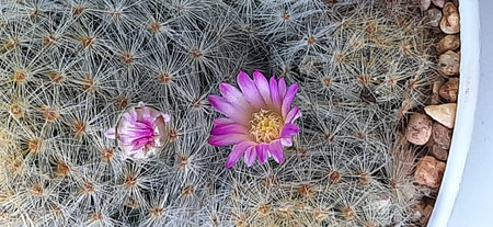 Mammillaria schiedeana cactus flower in pot
