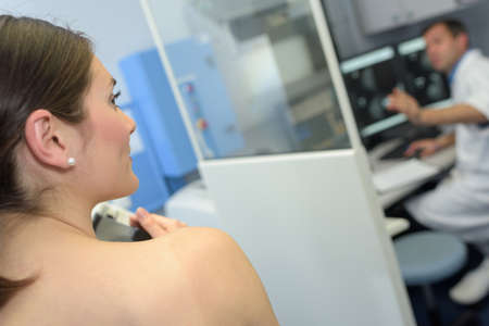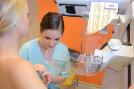 Female radiologist doing mammogram x ray for young woman to check for breast cancer