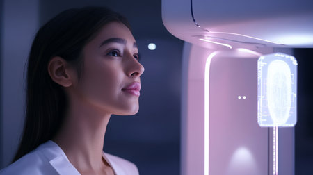 Healthcare professional engaged with advanced medical equipment in a modern clinical environment