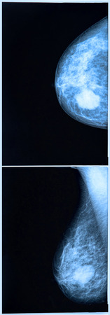 X-ray Digital Mammogram or mammography of the breast CC view for diagnonsis Breast cancer in women isolated on black background.