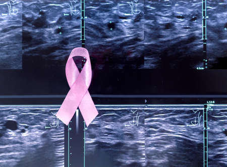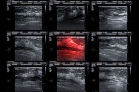 ultrasound of breast after mammography for diagnonsis Breast cancer in women isolated on black background.