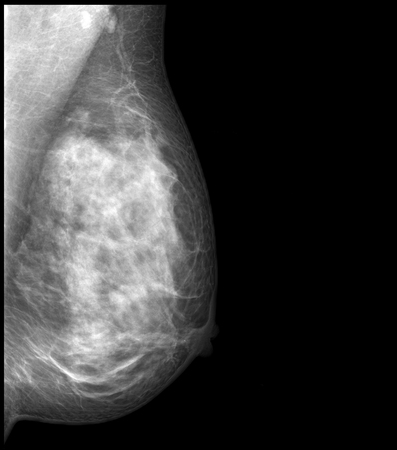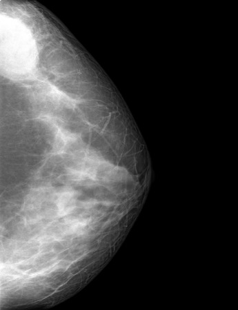 X-ray Digital Mammogram or mammography of the breast CC view for diagnonsis Breast cancer in women isolated on black background.