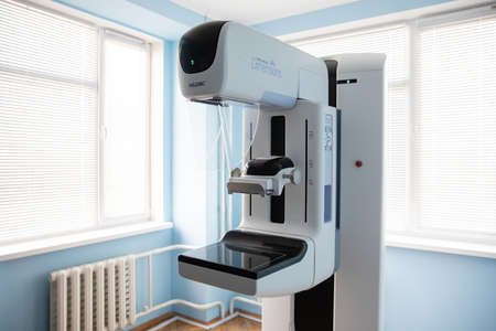 KYIV, UKRAINE - Oct. 20, 2021: Equipment for the consultative and diagnostic department of the Kiev City Cancer Center. Equipment for the diagnosis of breast cancer from the Poroshenko Foundation