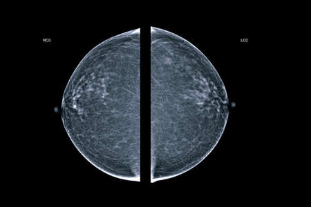 X-ray Digital Mammogram or mammography both side of the breast CC view for diagnonsis Breast cancer in women isolated on black background.