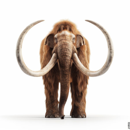 A woolly mammoth, prehistoric mammal isolated with shadow on white background. elephant mammoth. Generative Ai