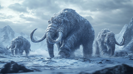 Mammoths huge prehistoric colossi in the ice age in the eternal ice