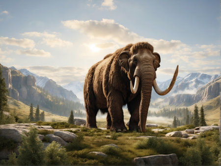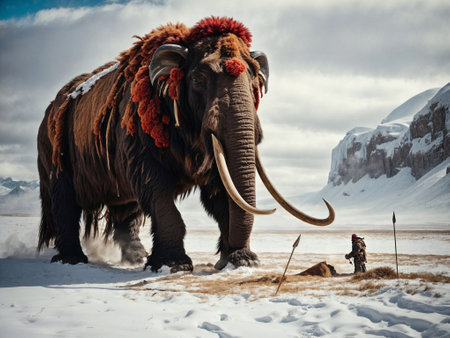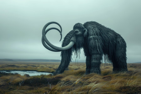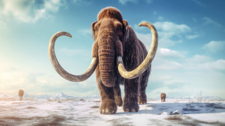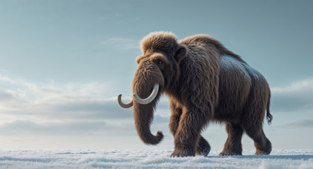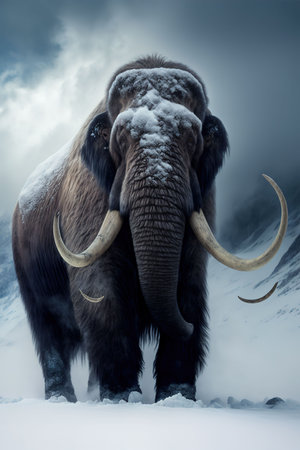 Prehistoric mammoth, an ancient giant of the ice age, symbolizing the wilderness and grandeur of prehistoric times, a majestic creature frozen in time.