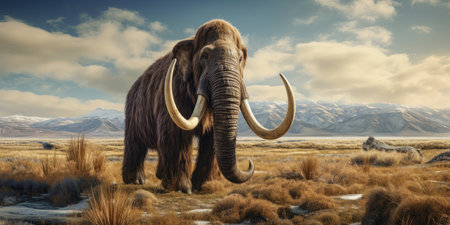 Ancient and majestic wooly mammoth, now extinct for thousands of years. Generative AI.