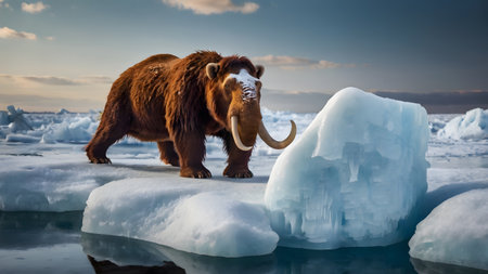 Prehistoric mammoth, an ancient giant of the ice age, symbolizing the wilderness and grandeur of prehistoric times, a majestic creature frozen in time.