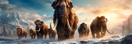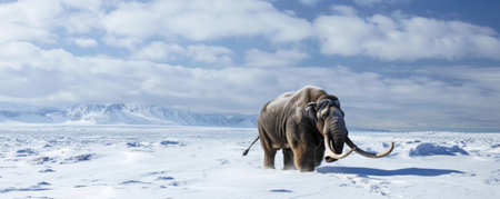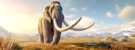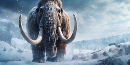 mammoth with long tusks in the ice age, banner