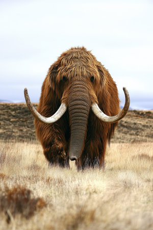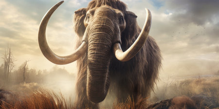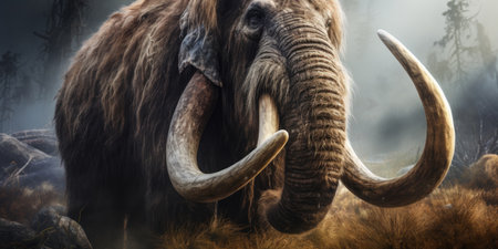 Mammoth portrait: A detailed portrait of a mammoth, showcasing the prehistoric creatures distinctive features and majestic presence, bringing to life the grandeur of ancient ice age wildlife