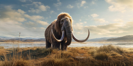 Ancient and majestic wooly mammoth, now extinct for thousands of years. Generative AI.