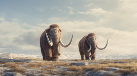 Woolly mammoths. elephant mammoth. Generative ai