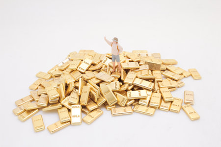 Pile of gold bars on fabric with trading graph overlay, evoking concepts of wealth, reserves, and economic stability