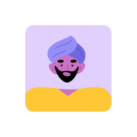 Avatar Of Male Character In Turban With Beard In Flat Vector Illustration Symbolizing Cultural Identity And Diversity, Isolated On White Background